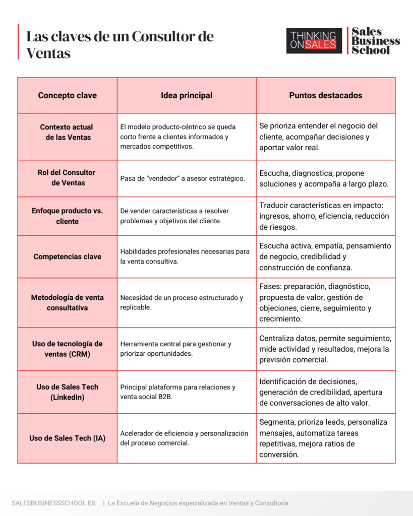 Combinar estas herramientas claves con una metodología consultativa convierte al profesional en un verdadero asesor estratégico: se introduce mejor, avanza más rápido y cierra con más coherencia y mejores ratios de éxito.